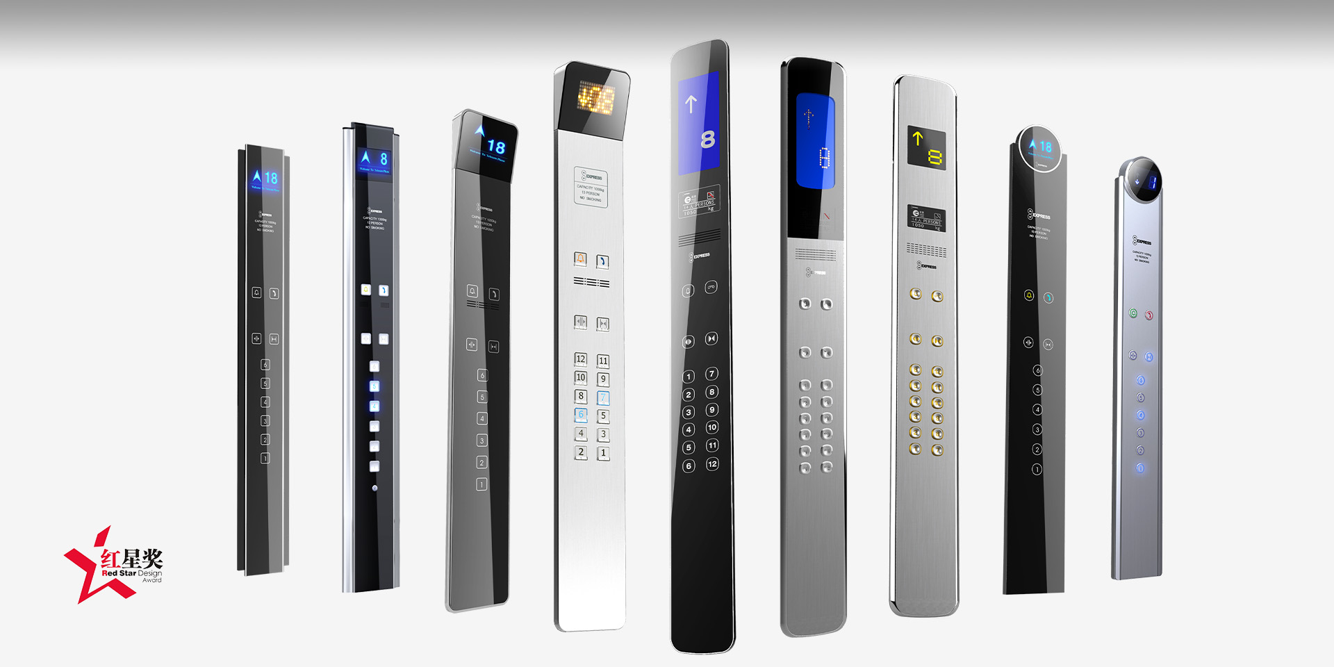 以市場品牌形象為基礎(chǔ)目標(biāo),同時滿足不同用戶人群的需求,植入先進的工藝技術(shù)和東方美學(xué)價值,從多角度詮釋設(shè)計,達到各方期待的平衡。從人的五感體驗、環(huán)境等方面出發(fā),了解使用者的期望。例如:樓層按鍵中一樓的按鍵是使用率最高的,通過放大按鍵,為用戶帶來更舒適的體驗;按鍵使用TOUCH KEY式的觸摸按鍵,帶來全新的觸摸體驗;針對特殊人群的需求,我們加入了音效體驗的設(shè)計。突出企業(yè)品牌形象,是設(shè)計的另一目標(biāo),通過利用快速電梯的品牌元素,傳遞品牌的核心價值,從而提升快速電梯產(chǎn)品的形象識別。美學(xué)和技術(shù)是我們實現(xiàn)二個目標(biāo)的手段,遵循亞洲人的審美情趣,延續(xù)快速電梯的英倫風(fēng)格,讓轎箱的創(chuàng)新設(shè)計盡可能的吸引更多的用戶。