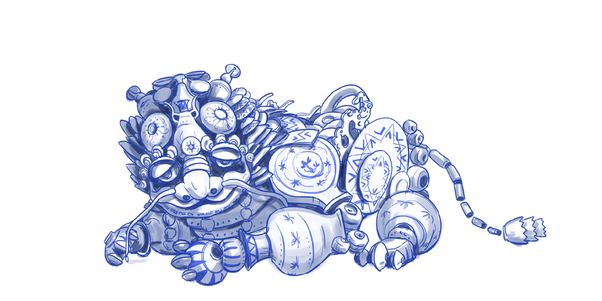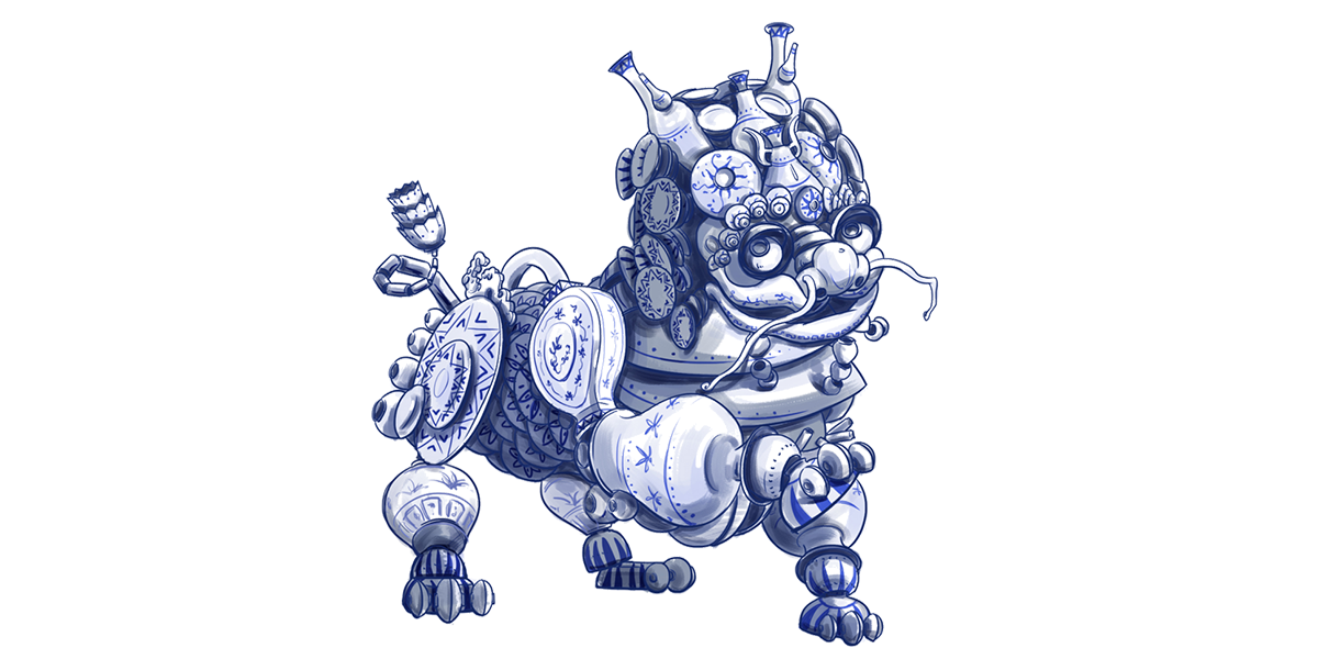 傳說中,在瓷世界里,一切生機盎然,在生態(tài)圈的頂端,有一個精靈和五個瓷瑞獸,瑞獸們守護在一條“瓷河”沿岸。HUA是一只由著名青花瓷構(gòu)成的瓷世界瑞獸。他活力、動感、單純、自信、一身正氣。HUA象征著傳統(tǒng)瓷文化新的朝氣和無窮的生命力