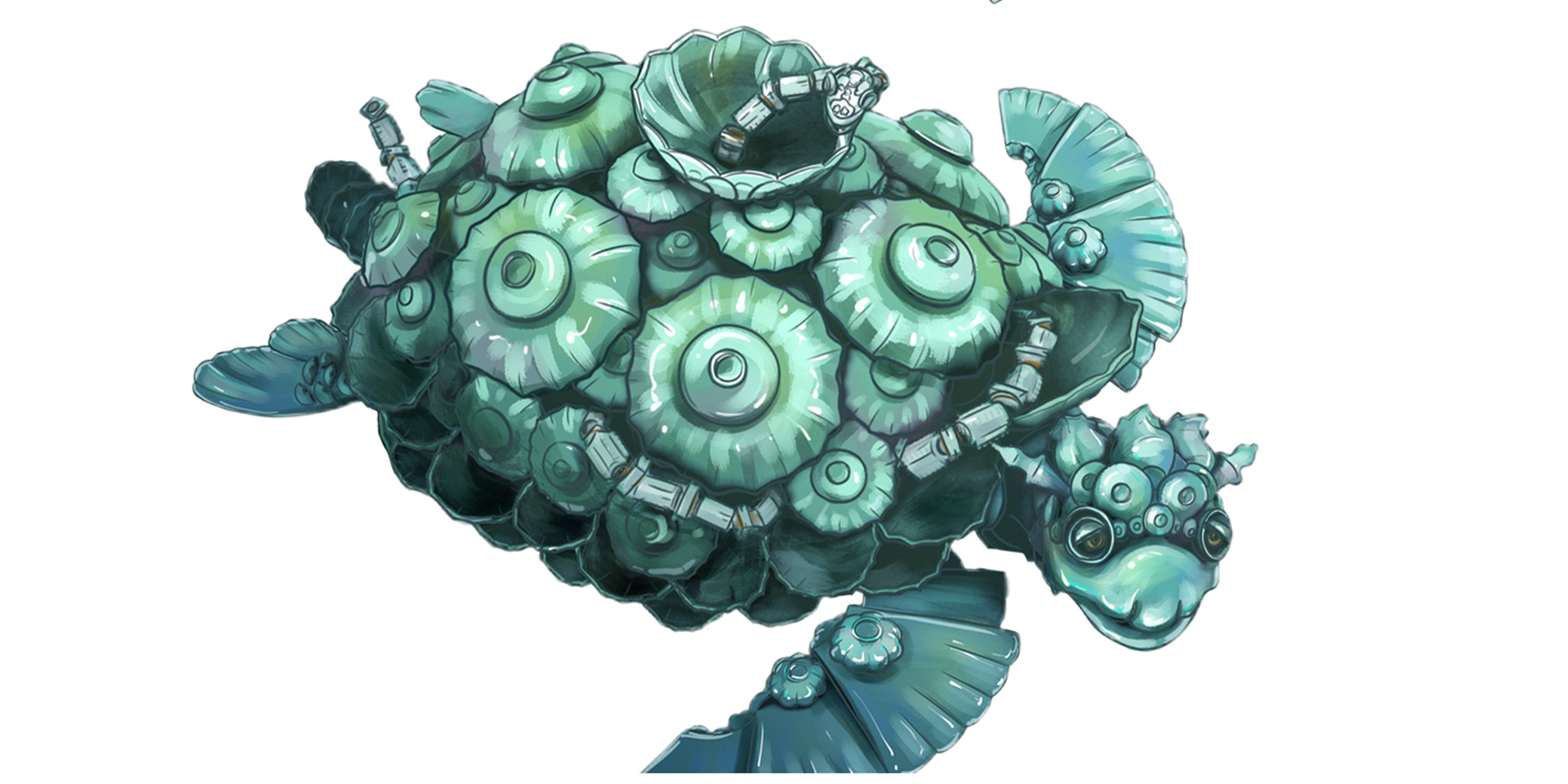 以中國(guó)傳說(shuō)中水中的“玄武”原型,幻化成巨型的鬼蛇造型,瓷器附著在礁石般的龜背上,映射興盛的宋代海上絲綢之路歷史中,以南海一號(hào)為代表的出口瓷器(青瓷、白瓷等)。