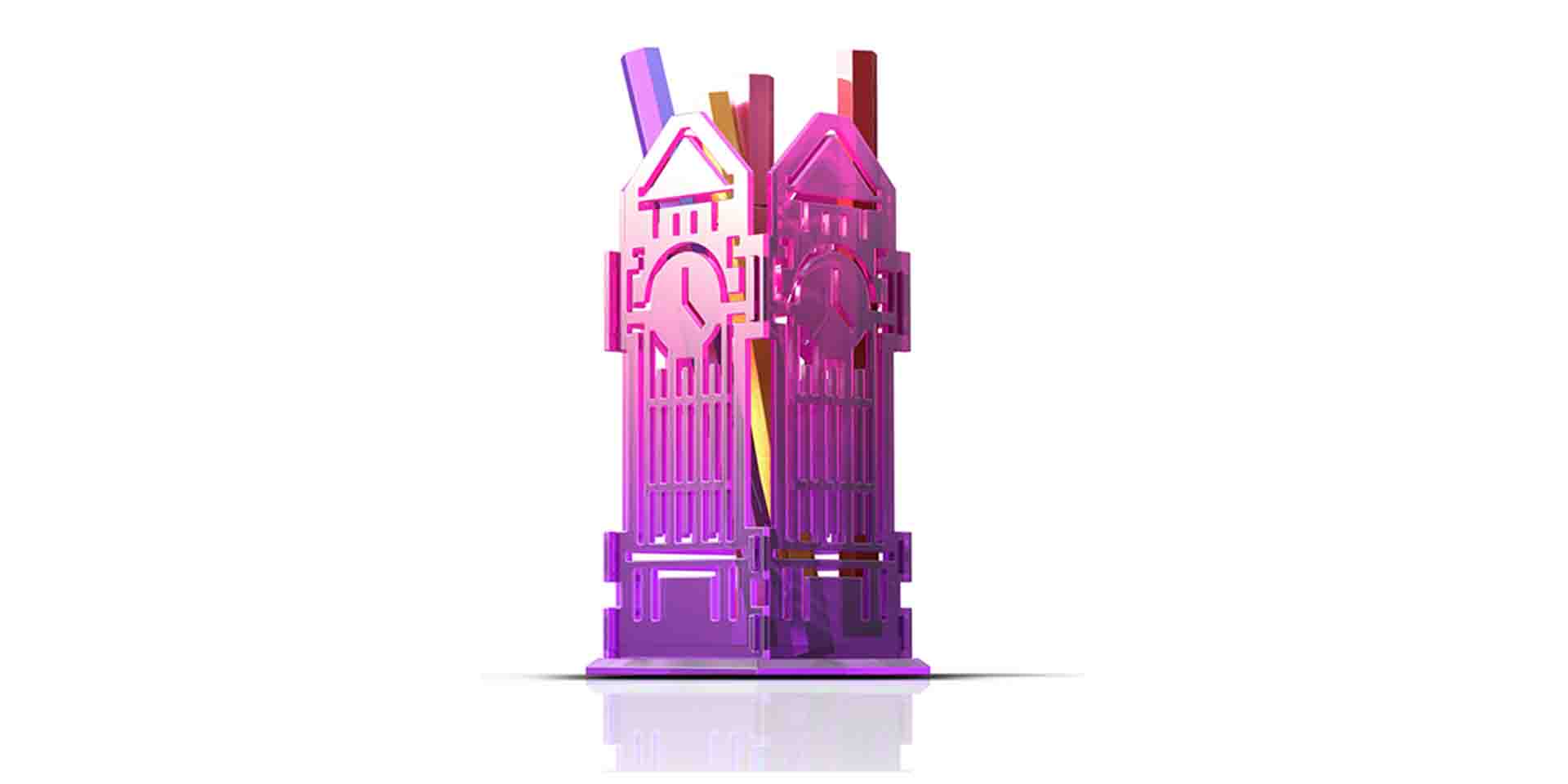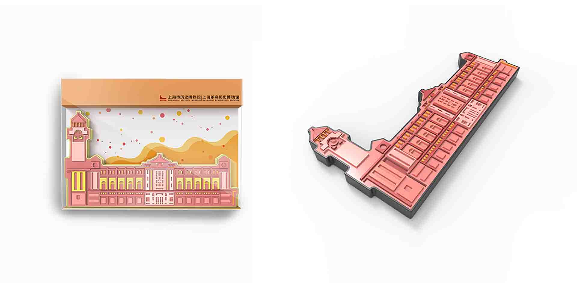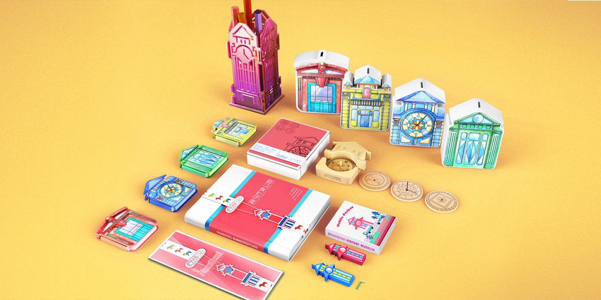 上歷博卡通少兒系列是木馬設(shè)計為上海市歷史博物館創(chuàng)新設(shè)計的兒童系列衍生品,將歷博館新樓作為整個設(shè)計的主打元素,配以活潑對比色調(diào),形成系列化的產(chǎn)品線,凸顯寓教于樂的活力氣息。上海市歷史博物館是上海2017年的重點工程項目之一,為此上海市政府特選取人名廣場最為著名的一棟建筑原上海跑馬廳作為上海歷史博物館的新館。跑馬廳(跑馬總會大樓)于1933年由英國設(shè)計師設(shè)計,整體建筑風(fēng)格以新古典主義為主,帶有濃厚的英國韻味。簡潔的建筑線條,凝重的建筑色彩和獨特的建筑風(fēng)格結(jié)合上海本土化特色,讓跑馬廳建筑成為人名廣場的一大標(biāo)志,莊重肅穆的氣質(zhì)讓跑馬廳與歷史博物館蘊含的歷史積淀有機融合,成為歷史博物館新館的不二選擇,也成為我們文創(chuàng)設(shè)計元素提煉的不錯選擇。上海市歷史博物館新館——跑馬廳具有濃烈的英式建筑氣息,繁復(fù)精致的細(xì)節(jié)設(shè)計讓整棟樓充滿典雅莊重的氛圍,并以鐘樓為主形成標(biāo)志性特征。設(shè)計師以整棟建筑為設(shè)計源,將繁瑣的建筑外形與圖紙簡化,以幾何化、扁平化、符號化手段來突出建筑外觀。輔以活潑配色,用色彩的對比凸顯上海歷史博物館“古今對話,適應(yīng)當(dāng)代”的氣質(zhì),同時也對外展示上海歷史博物館包羅萬象的大氣胸懷。形成一套寓教于樂,受兒童喜歡的系列產(chǎn)品。