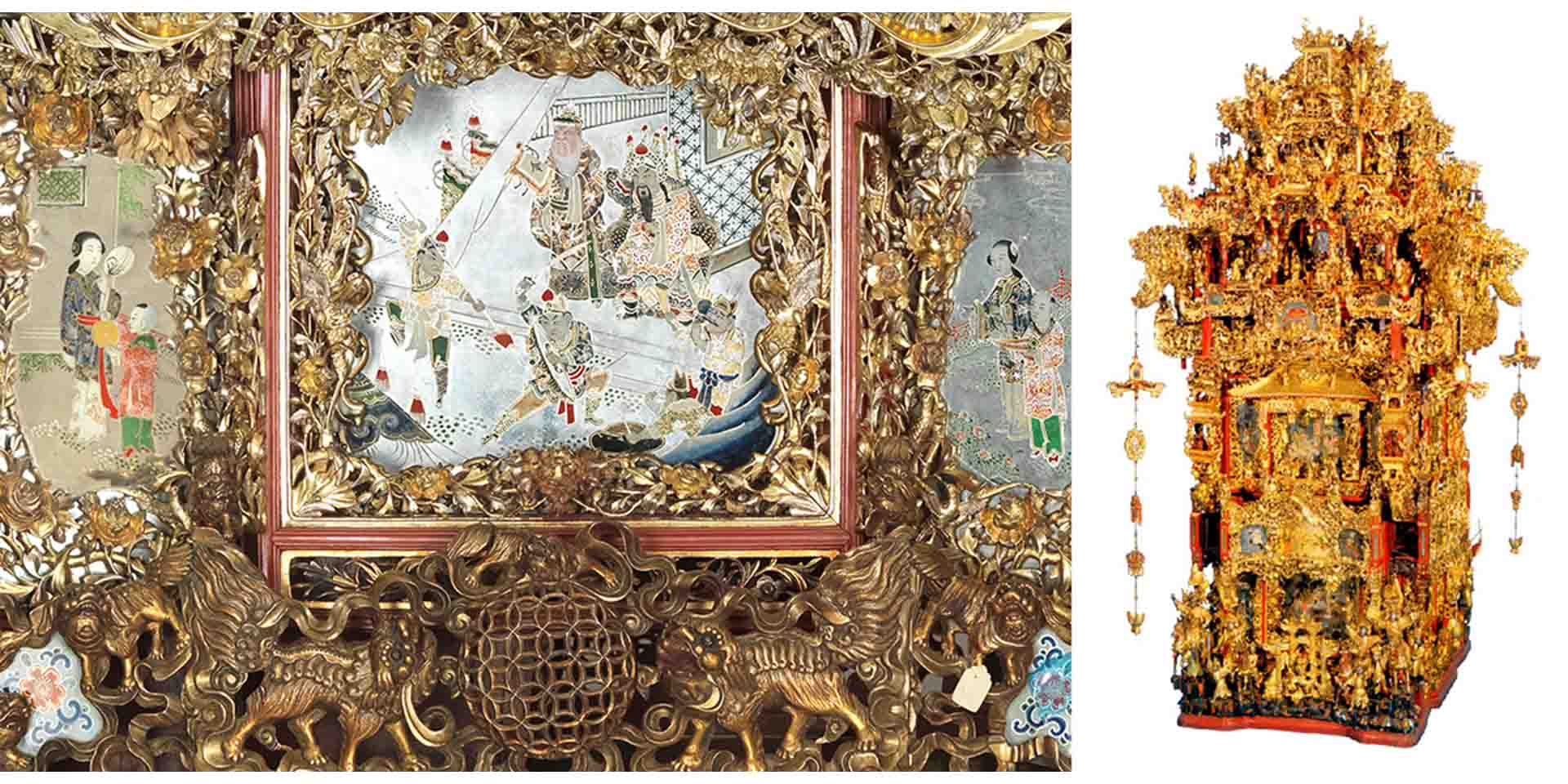 民國“百子大禮轎”是上海市歷史博物館重要藏品,是原上?!拔锶A號(hào)貰器店”主人周渭澄為兒子周宗余娶親所制,當(dāng)時(shí)從寧波請(qǐng)來了10位木雕藝人從1927年開始制作,歷時(shí)十年,直至1936年才完工。因制作需耗費(fèi)近一萬工時(shí),也被稱為“萬工轎”。
