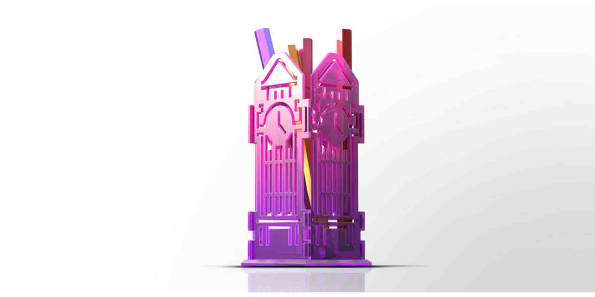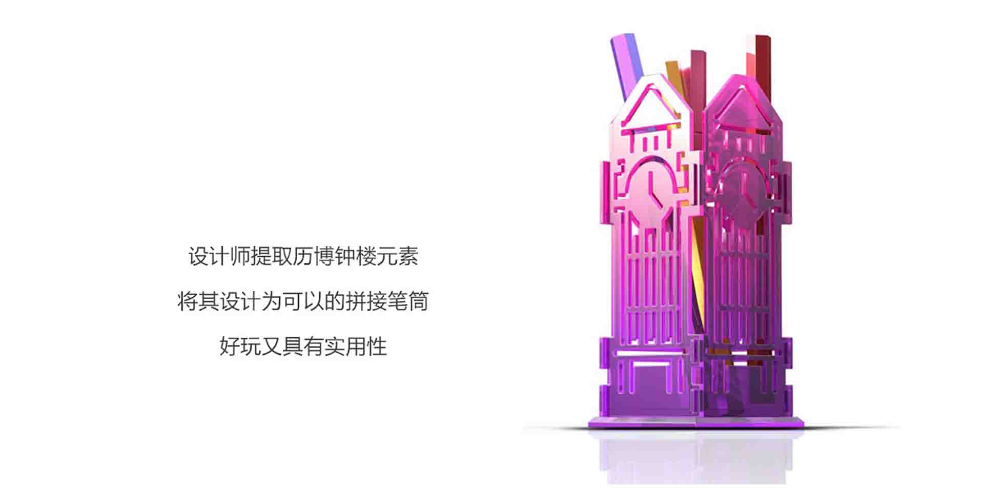 跑馬總會大樓于1933年由英國設(shè)計師設(shè)計設(shè)計。整體建筑風(fēng)格以新古典主義為主,帶有濃厚的英國韻味。設(shè)計師將繁瑣的建筑外形,幾何化、扁平化、符號化以突出建筑外觀。無論是汽車筆盒還是鐘樓筆筒,都是簡化設(shè)計,化繁為簡,既保留了原始的特征,又不會給人過于繁雜的感覺,更適合孩子使用。