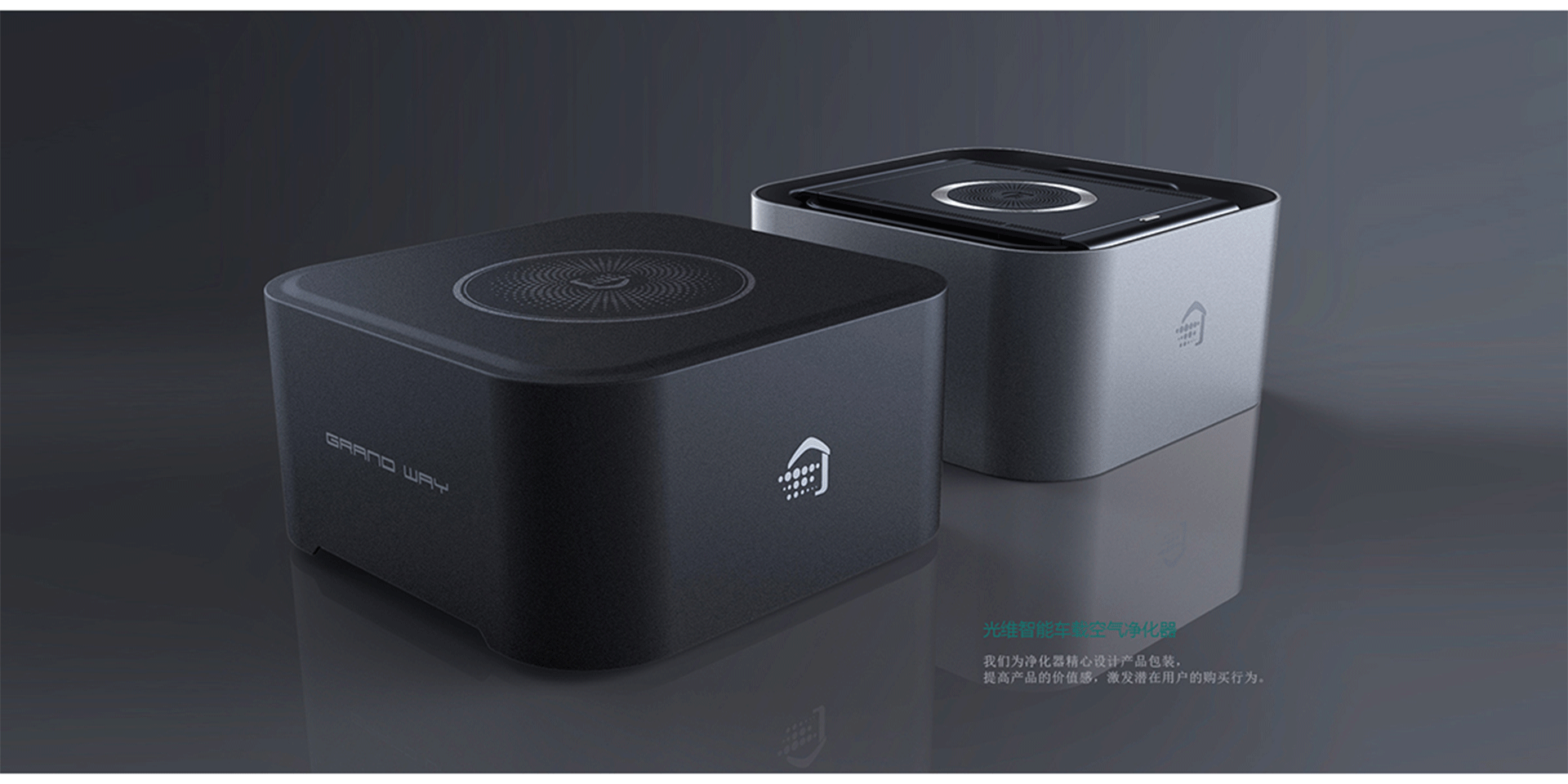 運用簡約的設計語言進行外觀設計,運用不同的表面處理工藝提升產(chǎn)品價值感和美觀性,提供多樣的配色以滿足用戶多樣的審美需求。產(chǎn)品亮點在于內(nèi)部集成負離子檢測器,實時監(jiān)測PM2.5濕度等其他空氣指數(shù),通過產(chǎn)品前方屏幕顯示給用戶,并且智能開啟凈化模式,周圍的提示燈會隨空氣質(zhì)量的改變而改變,讓用戶更為直接的觀測到空氣質(zhì)量。我們?yōu)閮艋骶脑O計產(chǎn)品包裝,提高產(chǎn)品的價值感,激發(fā)潛在用戶的購買行為。用于汽車內(nèi)部空氣檢測和凈化,智能處理汽車內(nèi)部有害氣體如:PM2.5、二氧化碳、一氧化碳、等有害氣體調(diào)節(jié)車內(nèi)空氣濕度,提高汽車使用者的駕駛感受,有利于汽車使用者的身心健康。