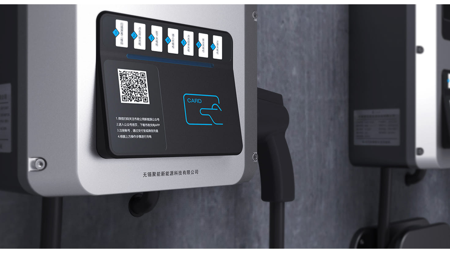在低碳環(huán)保的大趨勢(shì)下,新能源的發(fā)展越來(lái)越被注重,一款顏值與實(shí)力并存的充電樁就顯得尤其重要。此款充電樁采用了大斜面的設(shè)計(jì)風(fēng)格,正面采用可替換的形式,便于不同的廠商進(jìn)行使用。內(nèi)置 IC 刷卡裝置,便于用戶支付使用。通過(guò)燈帶的形式,使用戶更加直觀地了解充電樁的使用情況。