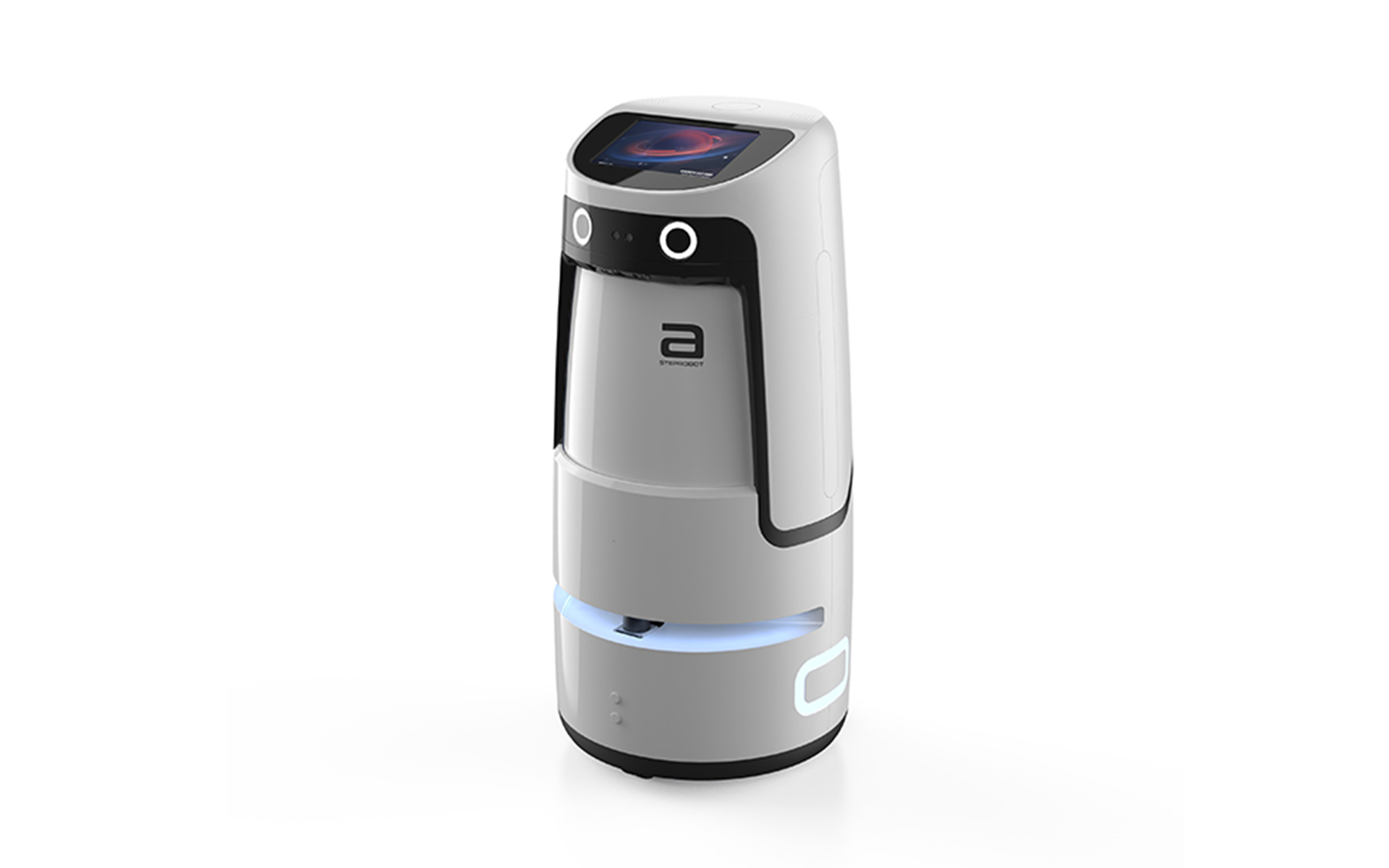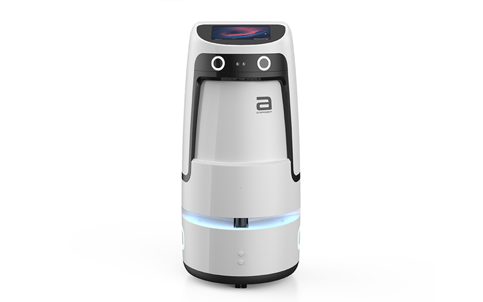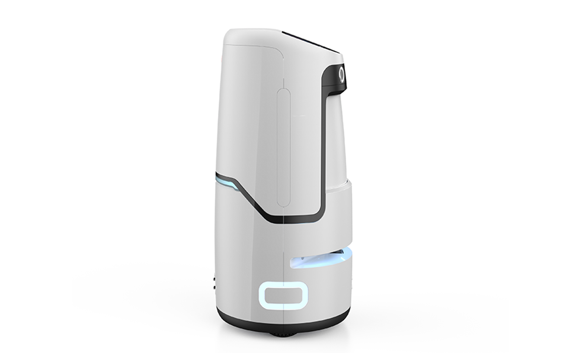 Amal機(jī)器人通過設(shè)計(jì)前側(cè)眼睛屏,并配上定制的表情動(dòng)畫,表達(dá)出服務(wù)機(jī)器人工作時(shí)轉(zhuǎn)動(dòng)眼睛的機(jī)靈表情、偶遇客人的愉悅表情、服務(wù)受阻時(shí)的焦急表情等。同時(shí)通過前后、兩側(cè)氛圍燈顏色的變換,表達(dá)出服務(wù)時(shí)、待命時(shí)、充電式的不同狀態(tài),均表現(xiàn)出服務(wù)機(jī)器人高智能的一面。