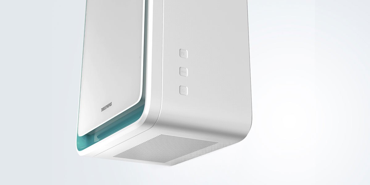 三個(gè)爸爸壁掛式新風(fēng)凈化器為全新一代的空氣凈化設(shè)備,解決了早期空氣凈化機(jī)只能過濾M2.5而無法提升室內(nèi)氧含量的問題。早期空氣凈化器無法增加含氧量,室內(nèi)氧氣不足、二氧化碳濃度過高導(dǎo)致的頭痛、頭暈、憋悶等問題。而如果開窗通風(fēng)則窗外的污染顆粒物會(huì)瞬間大量進(jìn)入,對(duì)傳統(tǒng)空氣凈化器而言相當(dāng)于“前功盡棄”不得不開足馬力再次凈化。所以新一代新風(fēng)凈化器的設(shè)計(jì)勢(shì)在必行。經(jīng)過細(xì)致深入的市場(chǎng)調(diào)研確定了兒童家庭在空氣凈化問題方面所存在的痛點(diǎn),更對(duì)市場(chǎng)相關(guān)產(chǎn)品進(jìn)行深入了解,以設(shè)計(jì)思維解決技術(shù)難題,讓產(chǎn)品更加人性化。方正的造型、圓潤(rùn)的機(jī)身給人穩(wěn)重的感覺,純白色鋼化玻璃面板能夠契合大部分家庭的裝修風(fēng)格,作為一款需要長(zhǎng)期固定在墻壁上的凈化產(chǎn)品,其設(shè)計(jì)和家裝風(fēng)格的匹配尤為重要。