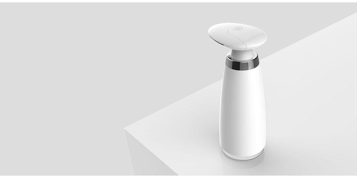 臺(tái)面感應(yīng)皂液器是為廣大消費(fèi)者設(shè)計(jì)的產(chǎn)品,采用仿生的設(shè)計(jì),將自然界的傘狀“蘑菇”形態(tài)運(yùn)用到產(chǎn)品造型中。隨著社會(huì)進(jìn)步,人們的個(gè)人健康衛(wèi)生意識(shí)逐步增強(qiáng),洗手液在酒店醫(yī)院商場(chǎng)的衛(wèi)生間已成為標(biāo)配。這款臺(tái)面感應(yīng)皂液器運(yùn)用了紅外感應(yīng)技術(shù),由電機(jī)驅(qū)動(dòng)噴頭,自動(dòng)噴出適量的洗手液到使用者的手心,既省去了使用者按壓出液的動(dòng)作,也避免多人碰觸按壓泵而帶來的二次污染。同時(shí)出液量可以調(diào)節(jié),有效的控制了用量,避免了浪費(fèi)。臺(tái)面感應(yīng)皂液器使用方便,無需安裝??梢苑胖迷诰频?、商場(chǎng)、醫(yī)院以及我們普通家庭的洗手臺(tái)上,只需將手放置在出液嘴下方,皂液將自動(dòng)噴出,簡(jiǎn)單方便且實(shí)用。用戶可以自己調(diào)節(jié)出液量,以滿足不同環(huán)境。
