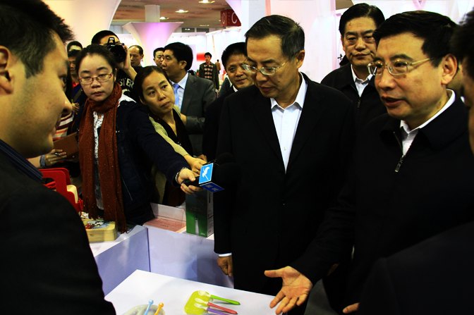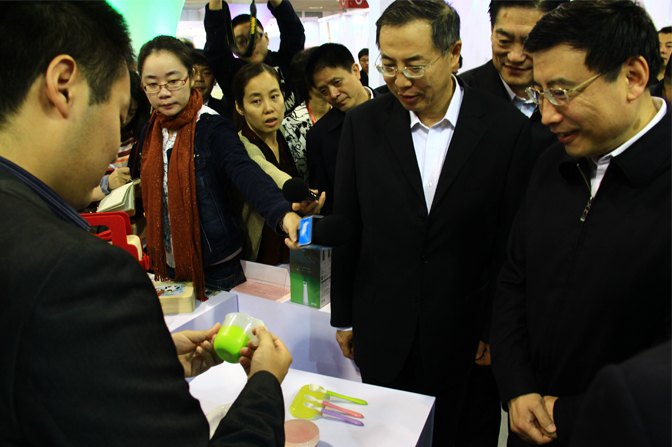苗圩部長饒有興致地觀看了參賽展品,特別在木馬展臺前駐足欣賞,認(rèn)真聽取了木馬主管顧聞對產(chǎn)品的講解。對木馬所設(shè)計的貝親兒童餐具很感興趣,還特地認(rèn)真地詢問此產(chǎn)品的設(shè)計概念和材料屬性,并談到兒童是祖國的未來,給兒童使用的產(chǎn)品一定要是健康安全,容不得半點馬虎。