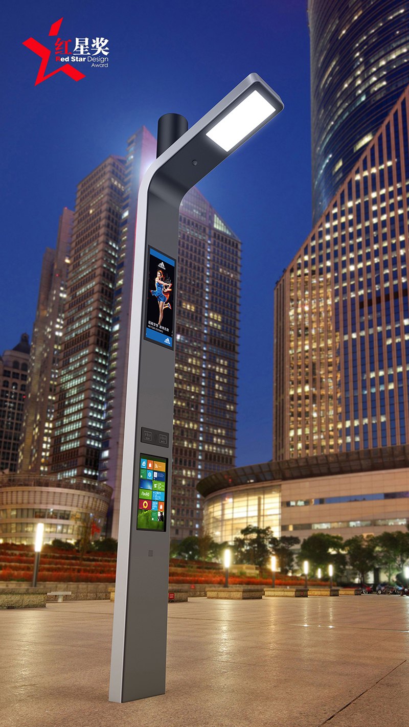 PRONA不僅是路燈,它造型獨(dú)特,設(shè)計(jì)別具匠心。上部采用新型的大功率LED面光源,燈頭頂部為太陽(yáng)能光伏發(fā)電裝置、微基站及視頻探頭裝置;中部是多媒體信息發(fā)布屏幕系統(tǒng),可以根據(jù)不同時(shí)節(jié)、場(chǎng)地更換廣告和城市公共信息;底部是交互體驗(yàn)屏,分為智慧社區(qū)、智慧商圈、智慧景區(qū)和智慧園區(qū)四大信息系統(tǒng),根據(jù)需求的不同提供實(shí)時(shí)信息和便民服務(wù)。