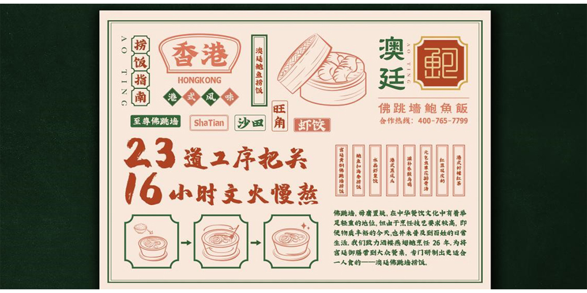 打造現(xiàn)代年輕化餐飲品牌澳廷鮑魚撈飯 品牌策略、LOGO+VI、門店空間設計 | 原料雖貴 絕不以次充好炮制雖繁 絕不偷工減料澳廷佛跳墻鮑魚飯隸屬于寧波聚食力品牌管理有限公司與寧波木馬設計共同打造策劃的餐飲品牌.