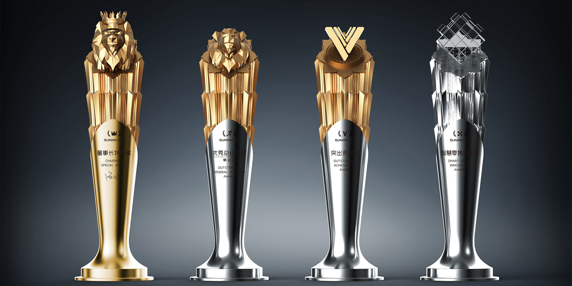 打造企業(yè)獎(jiǎng)杯的全新家族化系列,注入企業(yè)精神內(nèi)涵,激發(fā)員工積極性。助力蘇寧打造全新企業(yè)獎(jiǎng)杯家族化系列,建立全新的視覺感受和品牌語言,并且運(yùn)用設(shè)計(jì)行業(yè)的潮流趨勢,判斷未來的風(fēng)格走向,詮釋蘇寧未來榮譽(yù)獎(jiǎng)品的風(fēng)格定義。