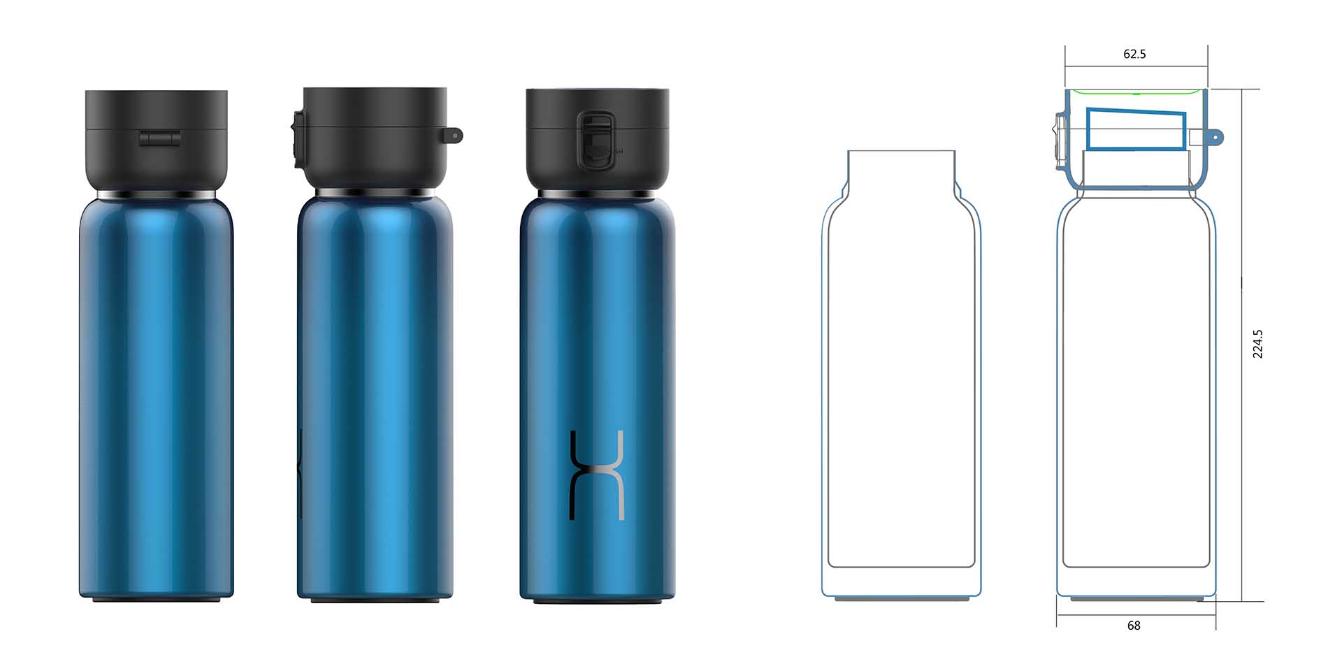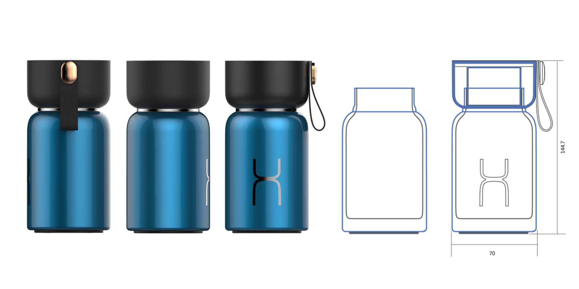 設(shè)計師根據(jù)“哈爾斯”品牌屬性和特征,為其設(shè)計了一套屬于自己的產(chǎn)品形象系統(tǒng)。產(chǎn)品以品牌 Logo 首字母“H”的外形為靈感,使消費者看到這一系列保溫杯時能直觀聯(lián)想到哈爾斯品牌。通過產(chǎn)品形象的塑造,增加品牌識別度與用戶忠誠度,符合品牌的長期發(fā)展目標(biāo)與愿景。