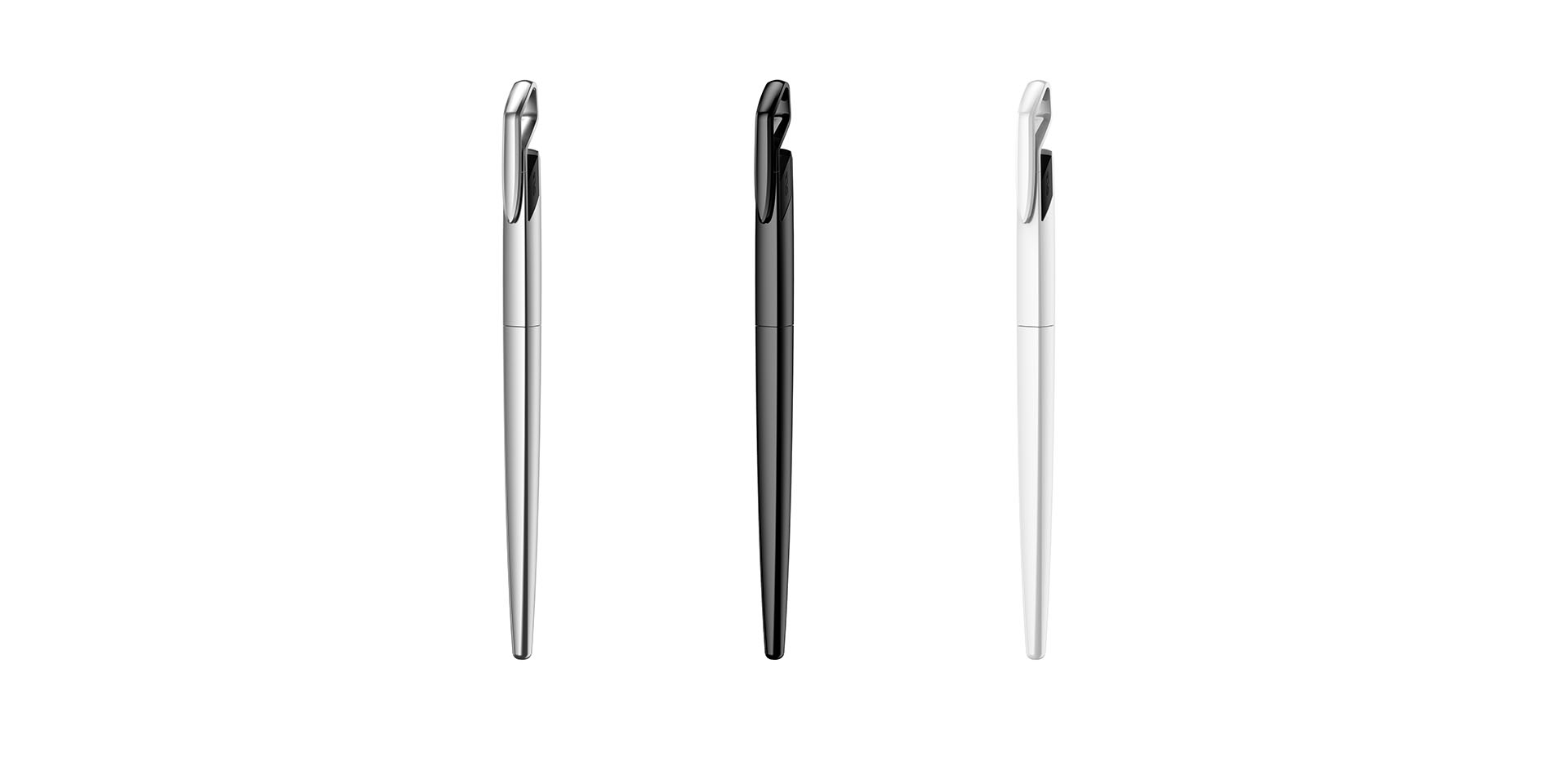 該禮品筆從動車的形象出發(fā),提取出動車形態(tài)的基礎元素,并與動車新的標識巧妙結合,通過速度與力量感兼具的線條,使整支筆具有動態(tài)美。采用給人以堅固感受的鋼琴烤漆的表面處理,表現(xiàn)出動車**的特點——高速、安全,朝發(fā)夕至。細節(jié)上,在筆身鑲嵌了一塊不同質感的方框,局部形成對比與點綴。筆夾處設置了一條漸消的斜邊,具有很強的力量感。隱藏的旋轉式開關使用方便,手感出眾,同時使整支筆的表面沒有任何多余的元素。伸縮式的筆尖可以保護筆頭,避免損壞。整支筆的風格簡潔、大氣、細節(jié)精致、形體生動,完美地刻畫出中國高鐵快速、安全、時代科技精品的高端形象。