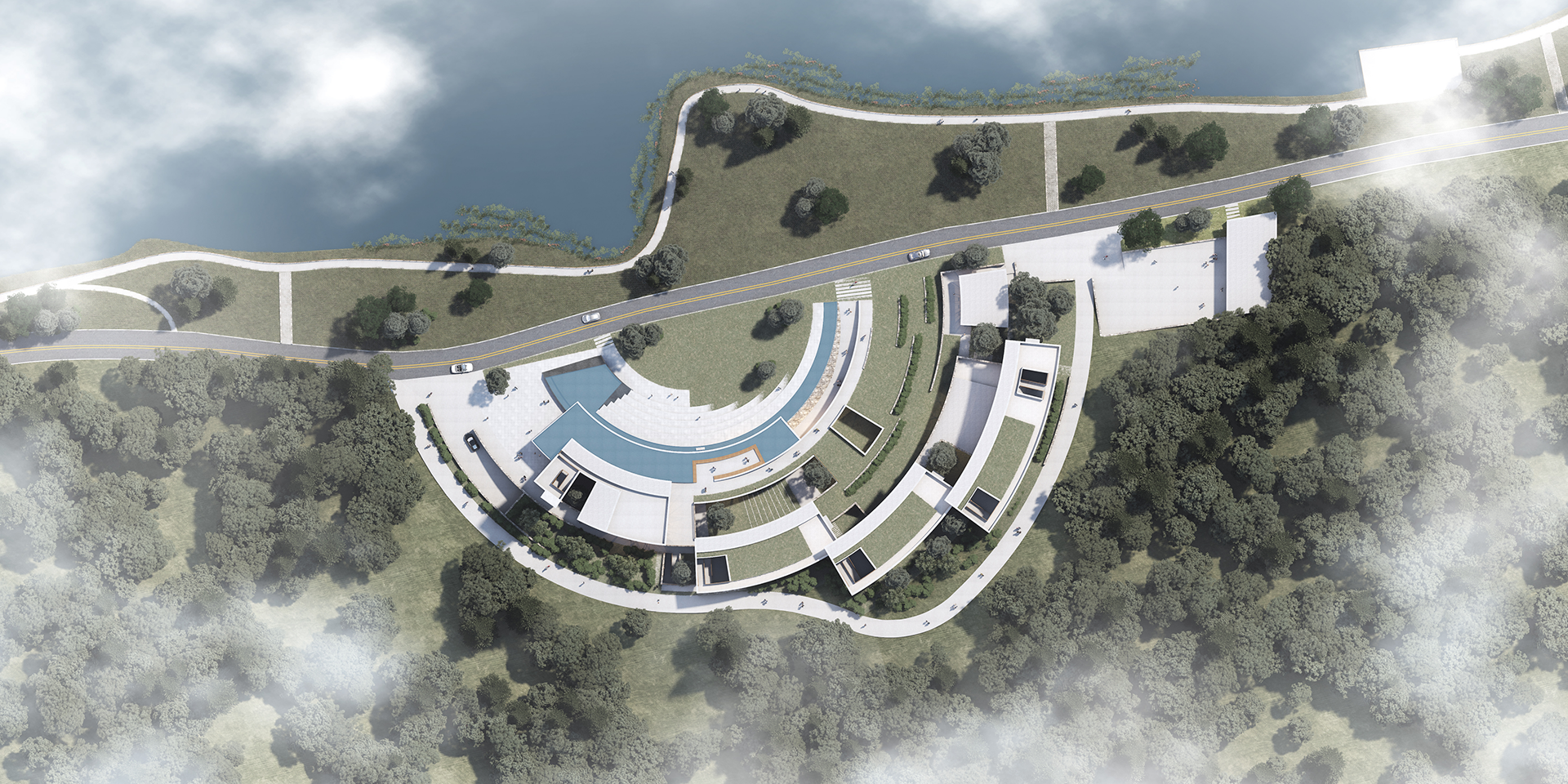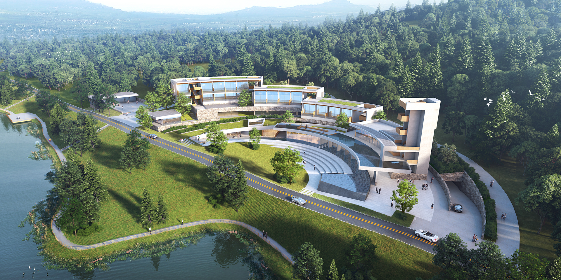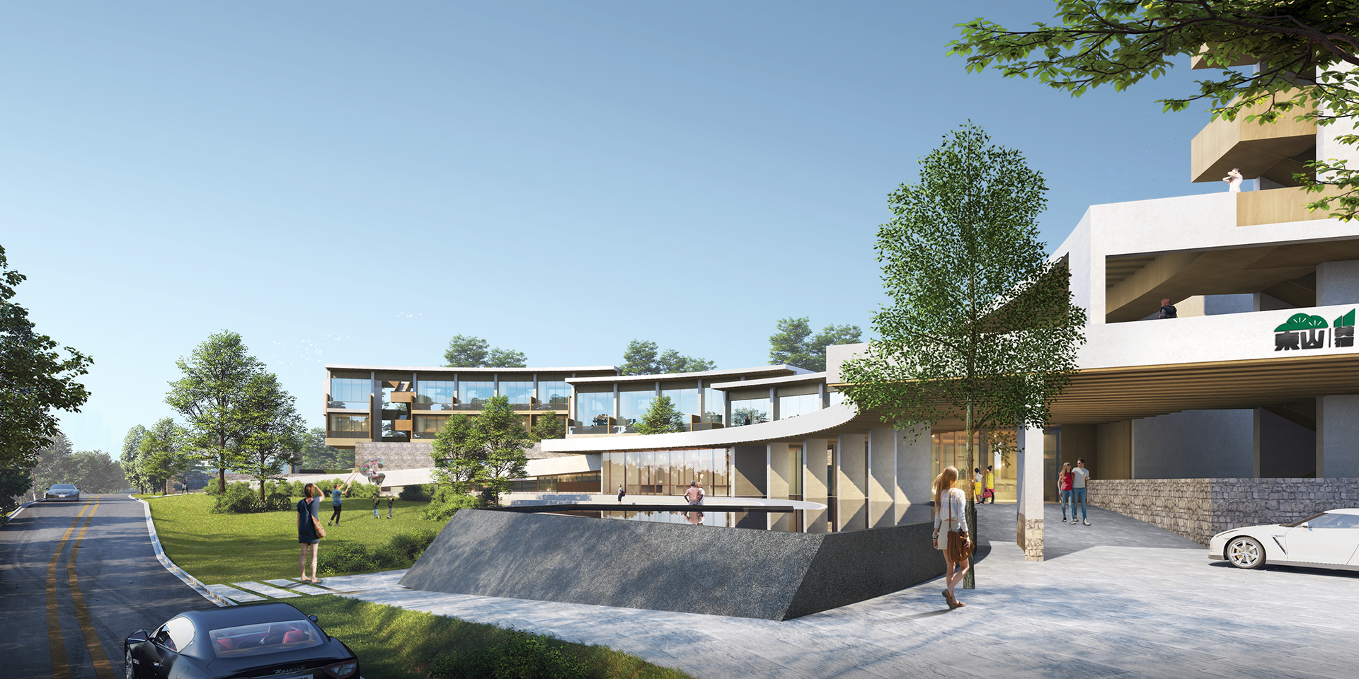 小東山村位于蒼山縣東南部,隸屬于山東省臨沂市蘭陵縣蒼山街道,本村的盆栽藝術文化歷史悠久,具有濃郁的地方風格和文化內(nèi)涵,為中國園林市場注入新的美學元素和文化內(nèi)涵,為本地的盆景產(chǎn)業(yè)發(fā)展提供了強大的支撐和動力。盆景藝術鄉(xiāng)創(chuàng)共同體建筑量體的構(gòu)成回應了場地的特性,結(jié)合面向湖岸的景觀優(yōu)勢,將六大主題空間有機分布排列與地形地勢結(jié)合,形成一個總體錯落,層層疊疊面向湖面展開的弧形建筑體。