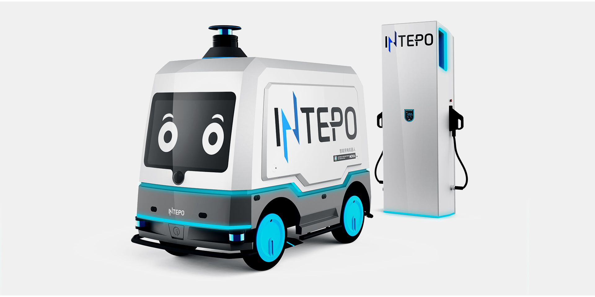 INTEPO Nova R30為滿足新能源優(yōu)化配置需求,解決新能源車主充電難的問題,以智能移動(dòng)儲(chǔ)充機(jī)器人的形式,讓每個(gè)停車位都變成充電位。將科技感、現(xiàn)代感的造型設(shè)計(jì)融入到工業(yè)產(chǎn)品設(shè)計(jì)中,與智慧和能量的組合不謀而合,讓可靠與精致渾然一體。本設(shè)計(jì)在傳統(tǒng)形態(tài)的基礎(chǔ)上,通過流線的設(shè)計(jì)增強(qiáng)產(chǎn)品的親和力,通過表情神態(tài)的細(xì)節(jié)處理讓產(chǎn)品更加靈動(dòng),通過可開合后門與交互觸屏相結(jié)合的車尾設(shè)計(jì)提升了產(chǎn)品的品質(zhì)感和易用性。INTEPO Nova R30為我國(guó)綠色出行建設(shè)加碼,以綠色低碳引領(lǐng)區(qū)域高質(zhì)量發(fā)展,以智慧科技服務(wù)人民美好生活。