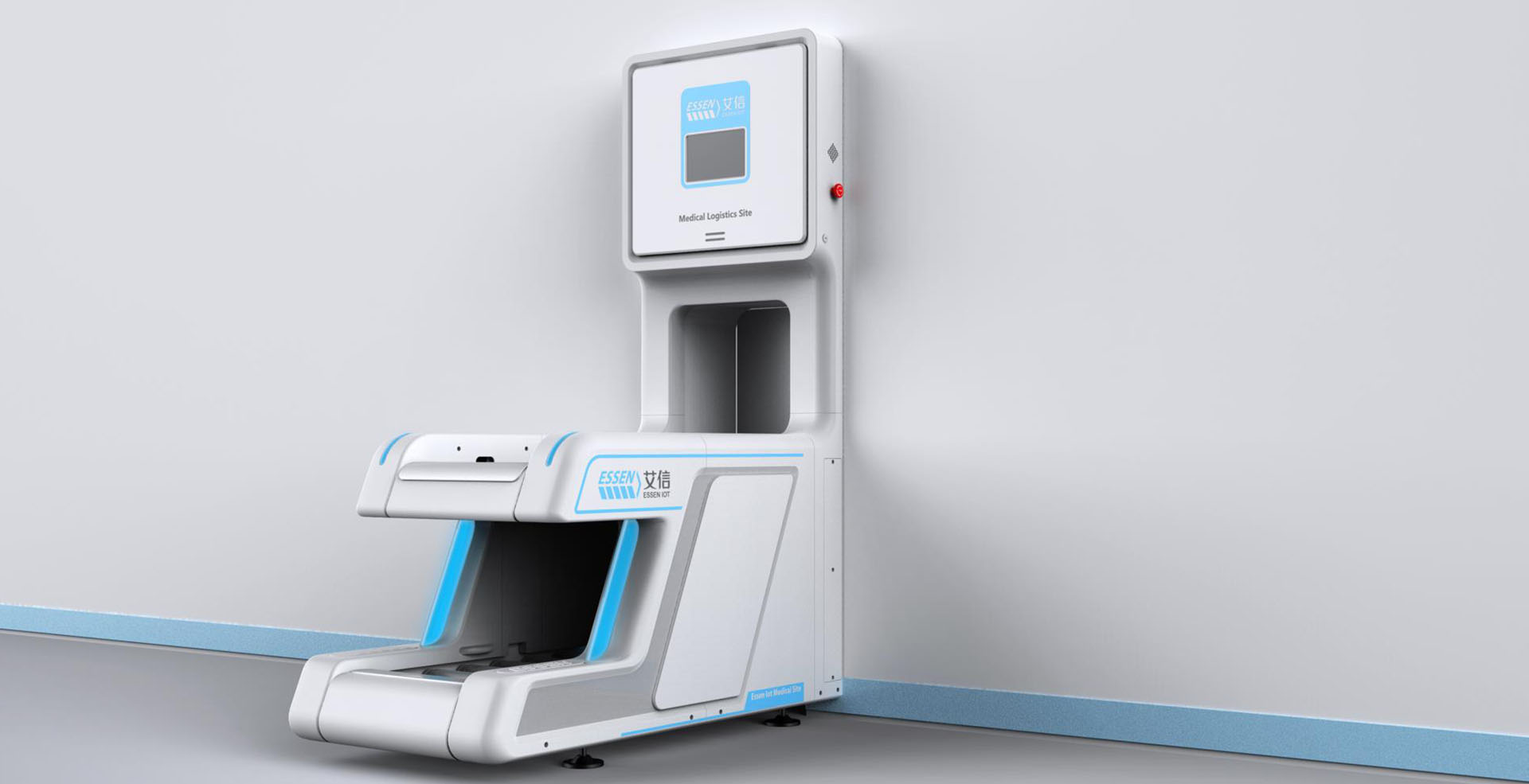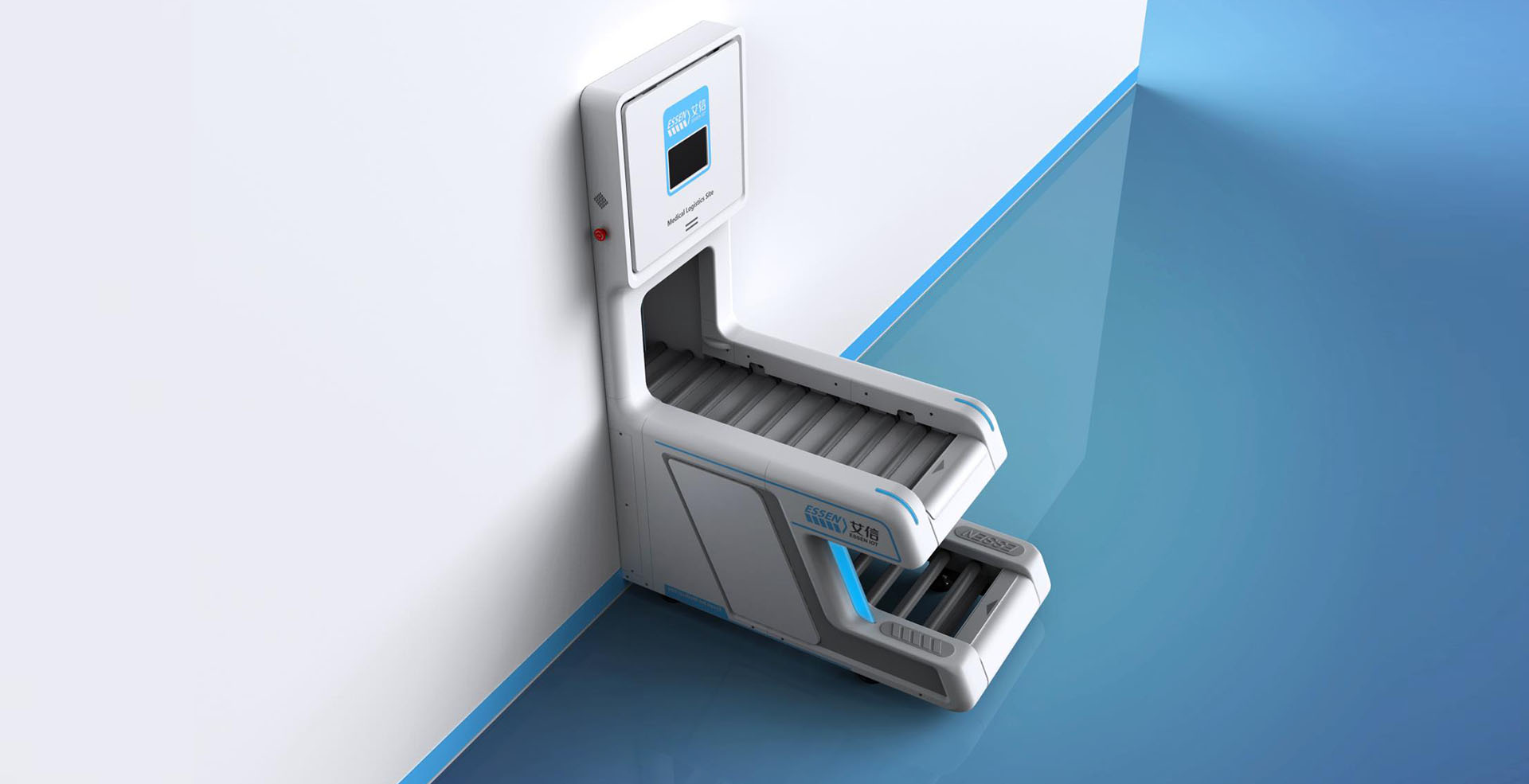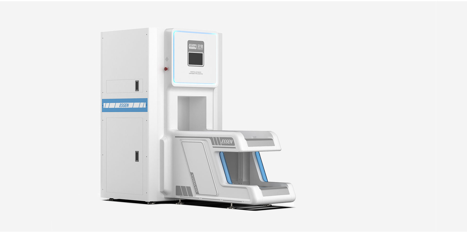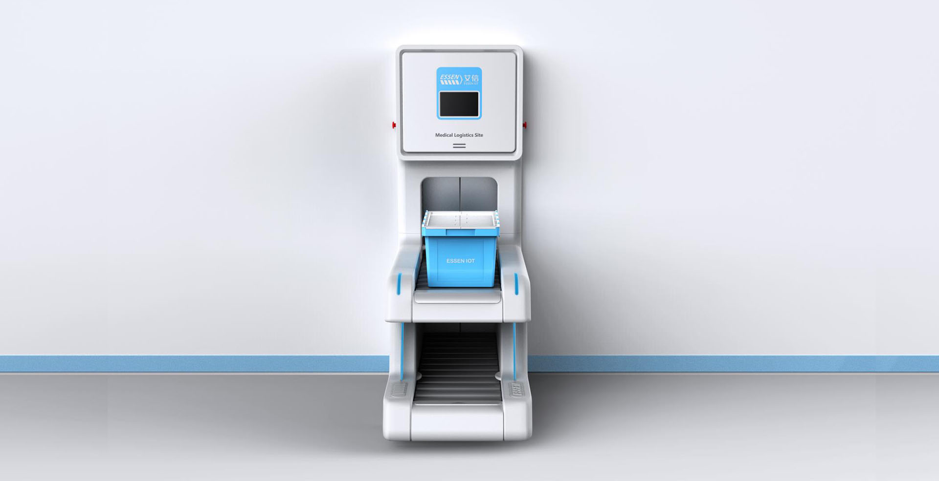 智能中型箱式物流傳輸系統(tǒng)在外觀上將面板和傳送帶連接到一起,形成統(tǒng)一整體性,圓角的運用給使用者親和的感覺,整體白色的運用使其與醫(yī)院環(huán)境相契合,給人以安全,信任感。通過搭建院內(nèi)自動傳輸線,以周轉(zhuǎn)箱為載體,實現(xiàn)全院物資的自動化傳輸,既能解決靜配中心、后勤物資等大批量高效率的傳輸,又能夠滿足急診檢驗、藥品等快速傳輸?shù)男枨蟆O到y(tǒng)傳輸范圍涵蓋醫(yī)院大部分物品,徹底改變了傳統(tǒng)的推車加人力的運輸方式,同時彌補了其他院內(nèi)小型物流傳輸能力不足的問題,開創(chuàng)了院內(nèi)物流自動化的新模式,既節(jié)省運輸時間,又避免運輸中物資受第二次污染、丟失的風險。能夠快速快速對醫(yī)院物資進行傳輸,為患者和醫(yī)護人員節(jié)省更多時間,提高了就醫(yī)效率。