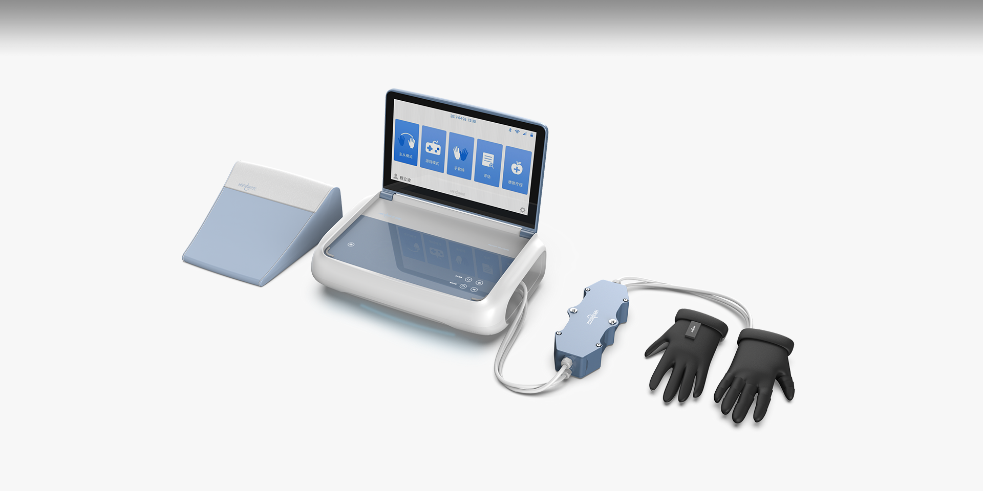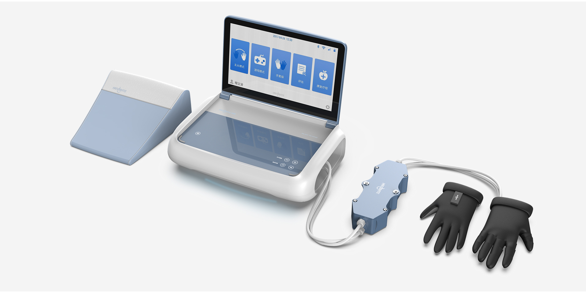 HANDMATE手盼系列智能軟體康復(fù)手套主要應(yīng)用于手功能障礙康復(fù),其技術(shù)克服了現(xiàn)有剛體式手部外骨骼體積大、重量重、穿戴不舒適等方面的局限。輕便舒適的臂托保障康復(fù)訓(xùn)練的最佳效果,一鍵收線功能讓桌面更整潔,訓(xùn)練更輕松。多角度懸停觸摸屏,**開合角度120°,保證多重使用情境下的優(yōu)秀交互體驗。該康復(fù)手套運(yùn)用主從式康復(fù)技術(shù),并與虛擬現(xiàn)實(shí)結(jié)合,增加康復(fù)的趣味性,幫助患者完成各種復(fù)雜精細(xì)手指動作。手康復(fù)操的訓(xùn)練,可以增加運(yùn)動和感覺信息輸入,很大程度促進(jìn)腦可塑性。該手套可提供主動和被動兩種康復(fù)方式,可以讓患者獨(dú)立完成主動式的康復(fù)訓(xùn)練,也可以通過計算機(jī)程序控制患者進(jìn)行被動式的康復(fù)訓(xùn)練。