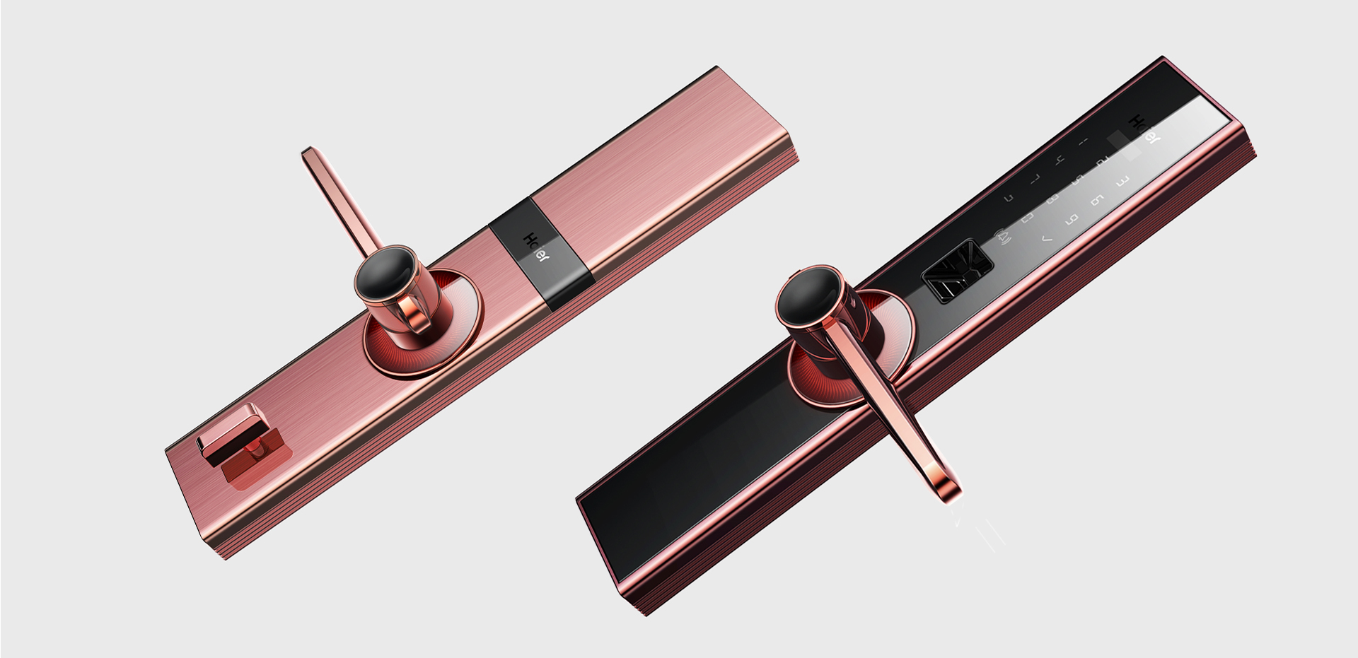云盾系列智能門鎖從旋轉(zhuǎn)把手這一關(guān)鍵動(dòng)作入手,將其作為視覺、使 用與交互的核心并將之放大,同時(shí)與其“智慧之眼”的名字相呼應(yīng)。 智慧之眼智能門鎖通過數(shù)字密碼、門卡以及指紋進(jìn)行來訪者的身份識(shí) 別,使得未經(jīng)授權(quán)的人員無法進(jìn)入家中或者辦公區(qū)域。門鎖的四周均 采用金屬材質(zhì),對(duì)中部玻璃面板也采取了包嵌的方式,使其無法被惡意人員使用暴力破壞,極大地增強(qiáng)了安全性。門鎖的把手摒棄了傳統(tǒng) 手柄正面很粗糙的外觀造型,將其調(diào)轉(zhuǎn)方向,既保證了正面觀看的纖 細(xì)美觀性,同時(shí)也大大增加了把手與人手接觸的面積。“智慧之眼” 獨(dú)特的屏顯方式與呼吸燈的交互方式,也使反饋更加親密,科技感和 品質(zhì)感一覽無余。