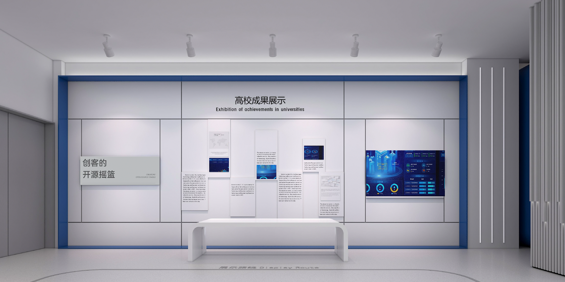 該項(xiàng)目是由浙江清華長三角研究院提供場地,智庫中心技術(shù)與工程教育研究中心主持建設(shè)的開放展廳項(xiàng)目。建設(shè)目標(biāo)為建成一個(gè)集發(fā)展歷程學(xué)習(xí)、發(fā)展成果匯報(bào)、先進(jìn)裝備展示、小型會(huì)議支持、茶歇招待于一體的綜合文化場所。